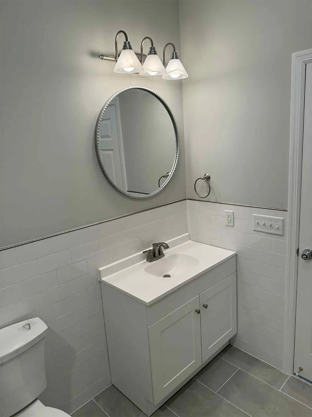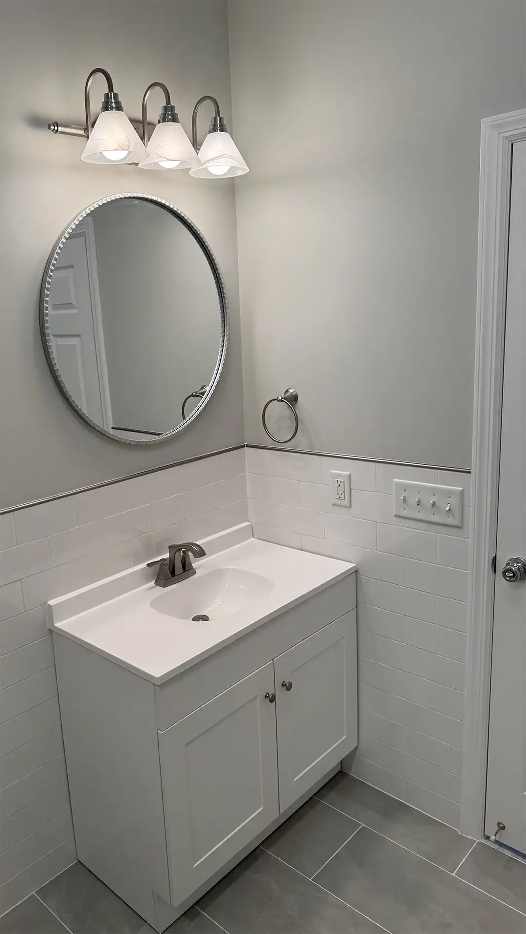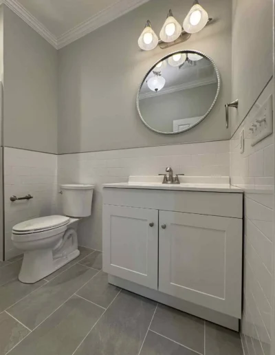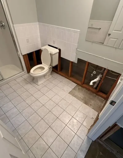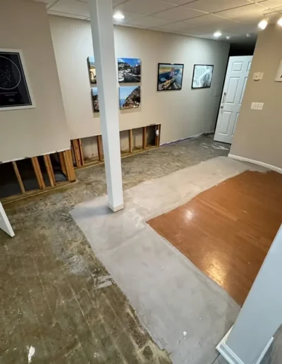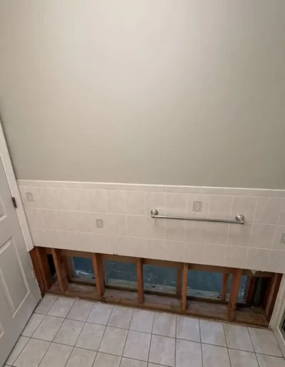 At this project in Holmdel, NJ, a failed sewer ejector pump caused significant water damage to a finished basement and adjoining bathroom. Our team stepped in to handle the full restoration process, removing damaged drywall, repairing affected areas, and applying fresh spackle and paint to restore the space. In the bathroom, we took the opportunity to do more than just repair—we transformed the outdated design by installing clean, modern subway tile, giving the room a bright and updated look. The result? A fully restored and refreshed space that’s even better than before.